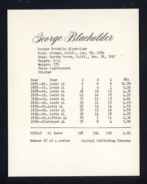 1974 Capital Publishing #095 George Blaeholder Browns NR-MT 537659