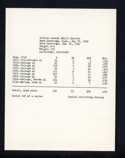 1974 Capital Publishing #109 Bill Barrett White Sox NR-MT 537672