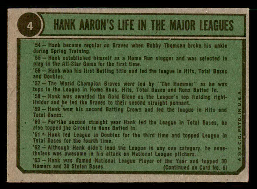 1974 Topps Baseball #004 Hank Aaron Braves VG-EX 542376