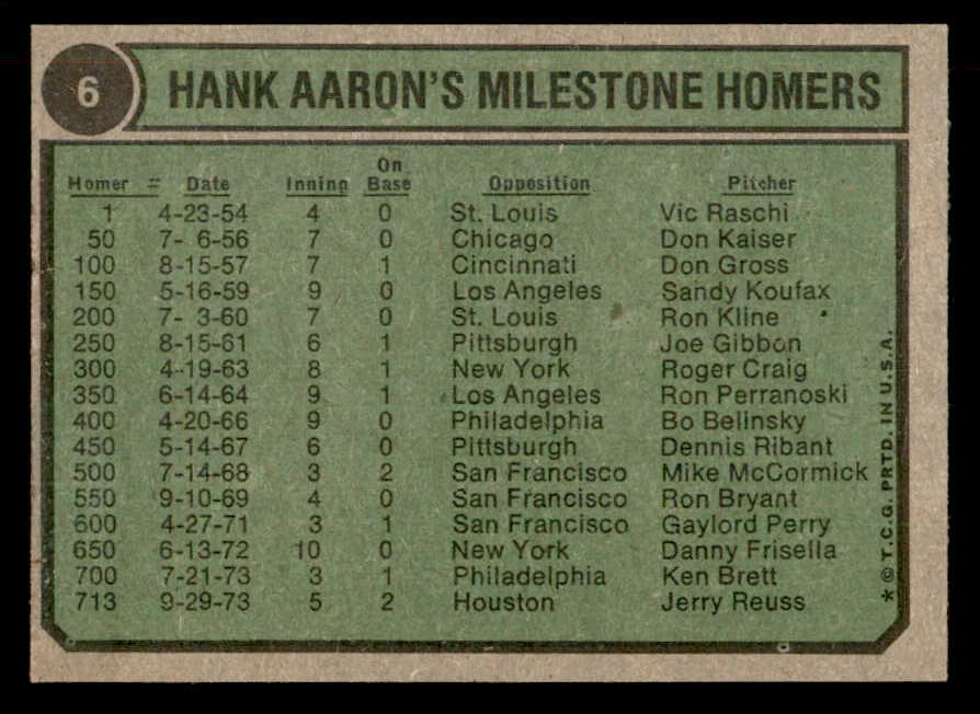 1974 Topps Baseball #006 Hank Aaron Braves NR-MT 541569