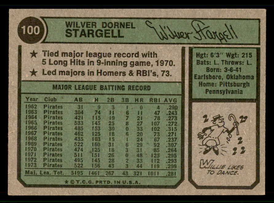 1974 Topps Baseball #100 Willie Stargell Pirates EX-MT 542379
