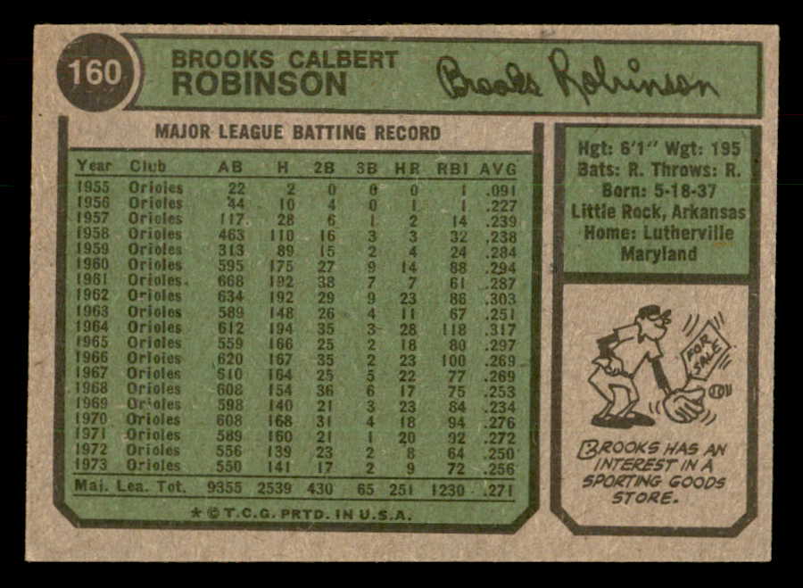 1974 Topps Baseball #160 Brooks Robinson Orioles EX-MT 541554
