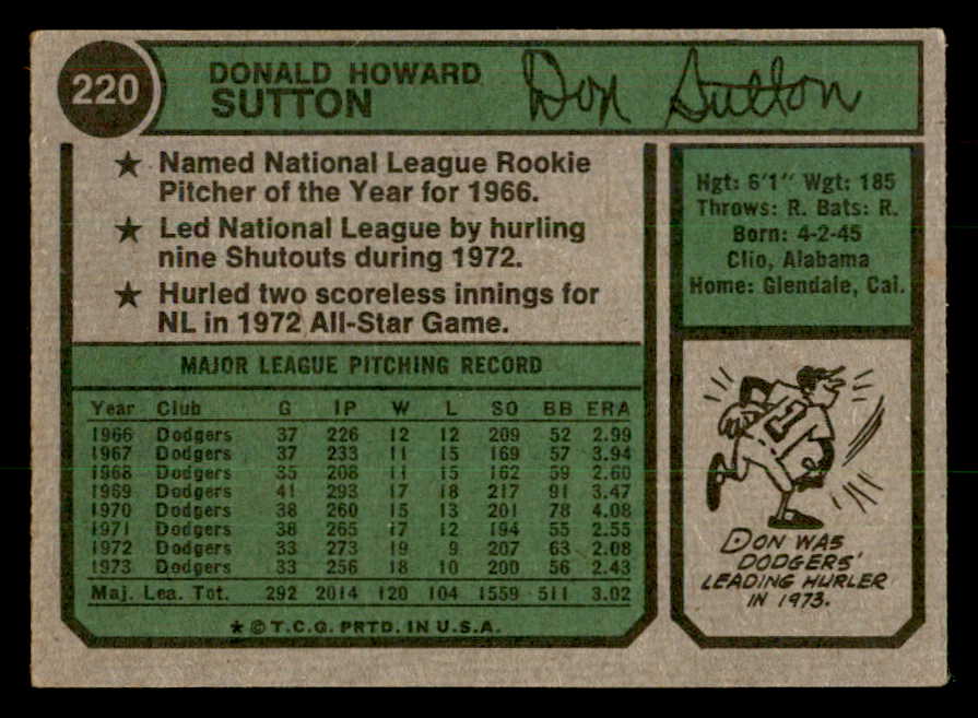 1974 Topps Baseball #220 Don Sutton Dodgers VG-EX 541546