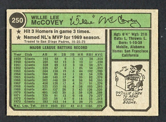 1974 Topps Baseball #250 Willie McCovey Padres EX-MT Variation 537394