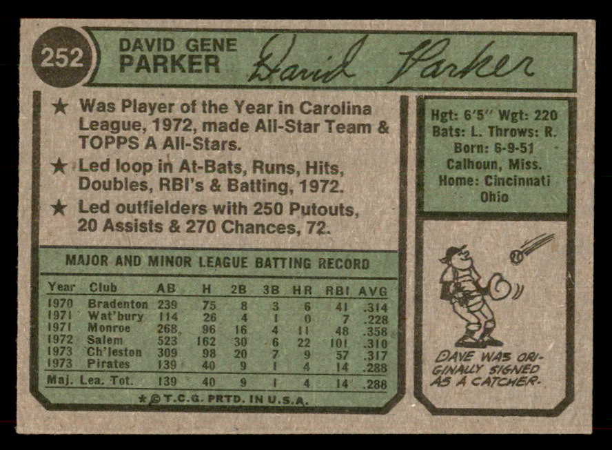 1974 Topps Baseball #252 Dave Parker Pirates EX+/EX-MT 546672