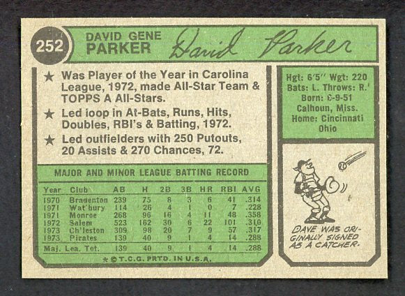 1974 Topps Baseball #252 Dave Parker Pirates EX-MT 537730