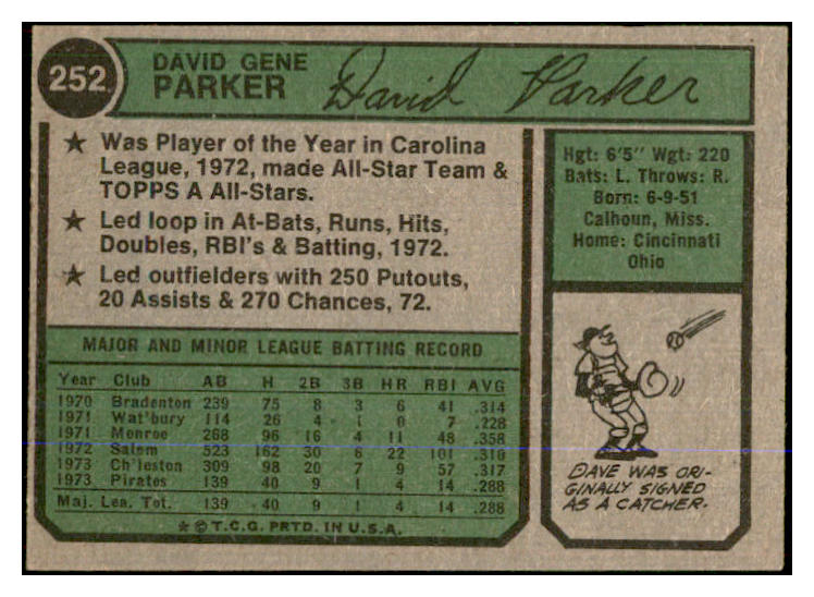 1974 Topps Baseball #252 Dave Parker Pirates EX-MT 537731