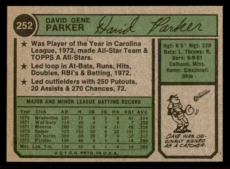 1974 Topps Baseball #252 Dave Parker Pirates EX-MT 542109