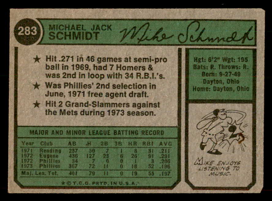 1974 Topps Baseball #283 Mike Schmidt Phillies VG 546675