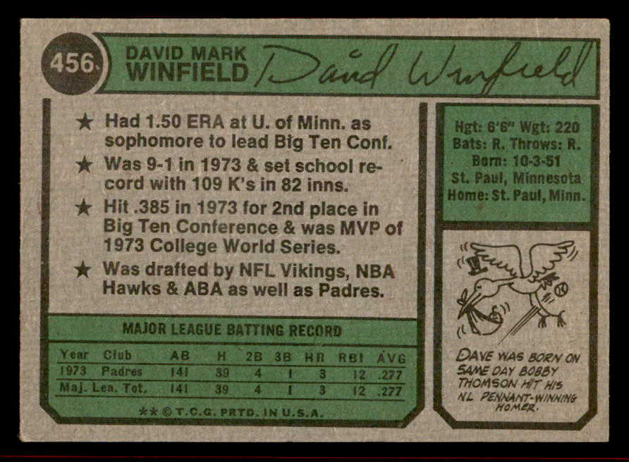 1974 Topps Baseball #456 Dave Winfield Padres EX 542098
