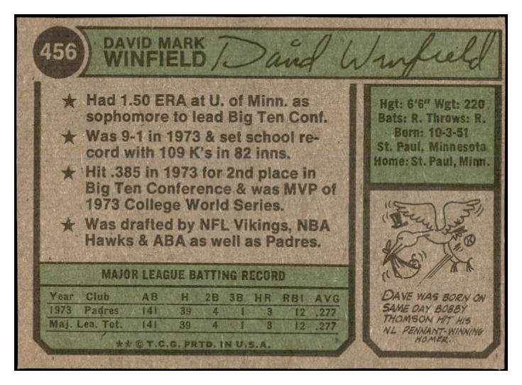 1974 Topps Baseball #456 Dave Winfield Padres EX-MT 536366