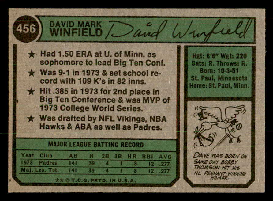 1974 Topps Baseball #456 Dave Winfield Padres EX-MT 541549