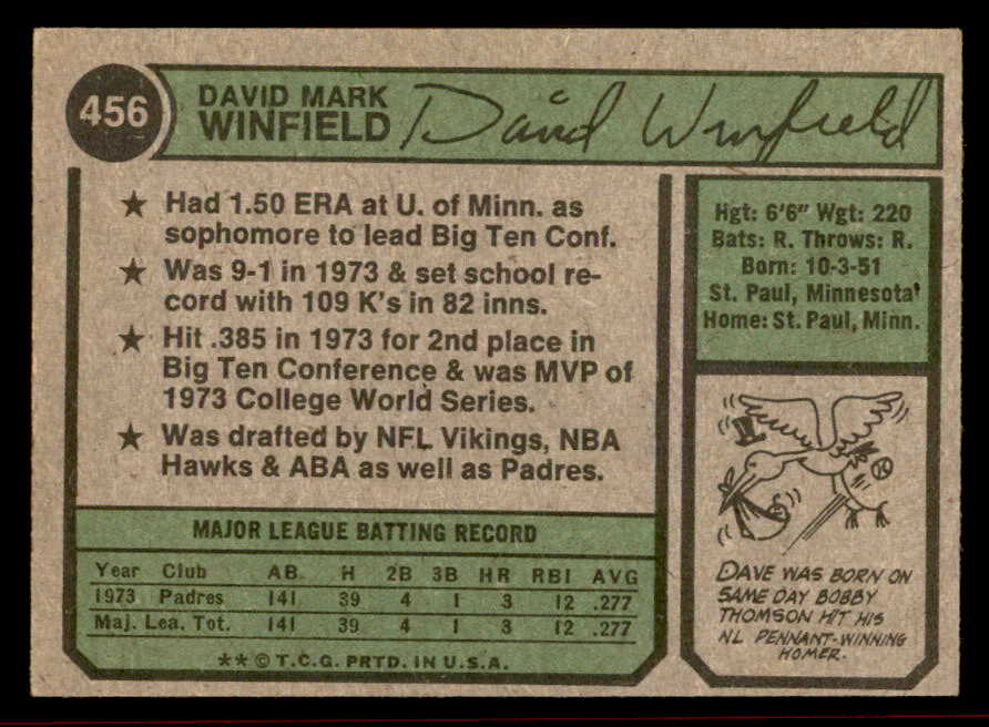 1974 Topps Baseball #456 Dave Winfield Padres EX-MT 542097