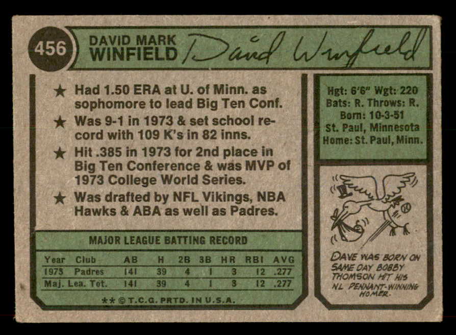 1974 Topps Baseball #456 Dave Winfield Padres VG-EX 546674