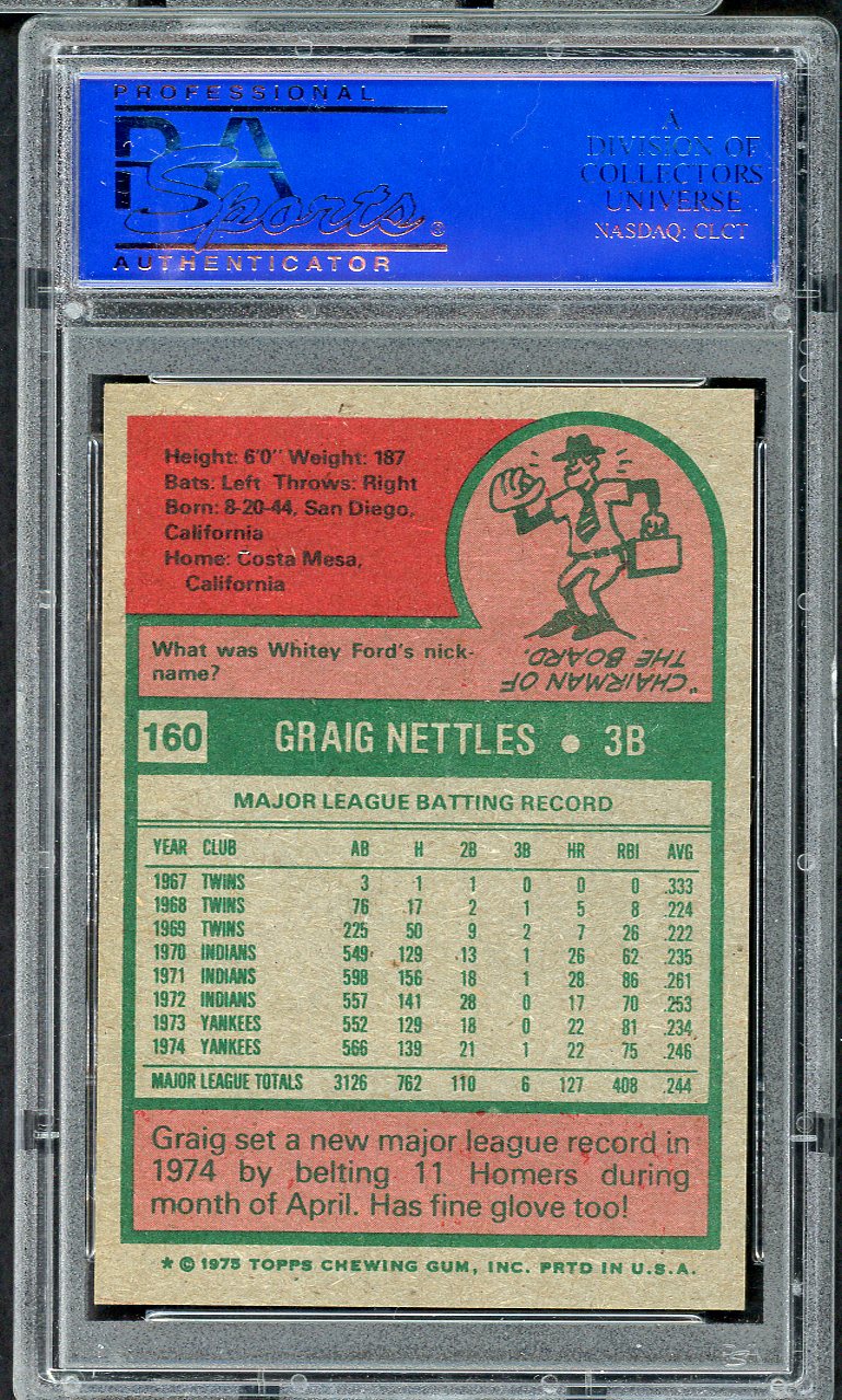 1975 Topps Baseball #160 Graig Nettles Yankees PSA 8 NM/MT 547515