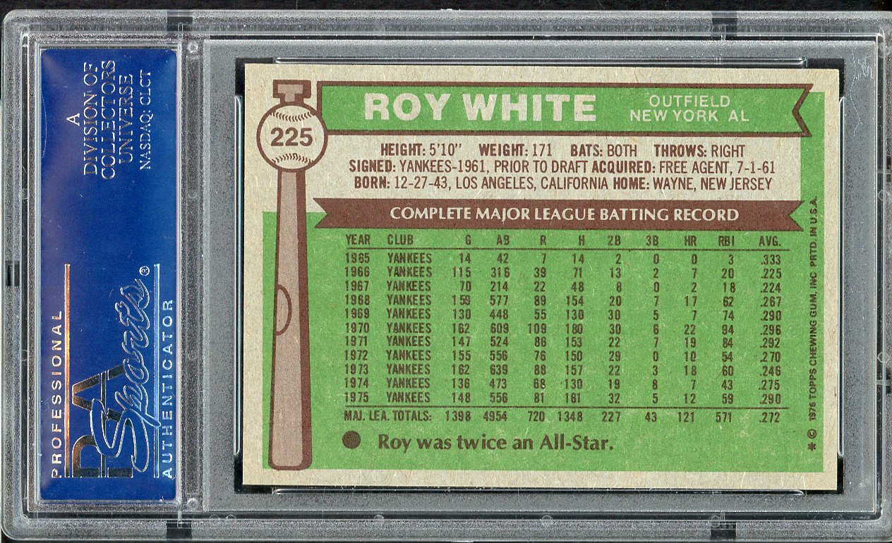 1976 Topps Baseball #225 Roy White Yankees PSA 8 NM/MT 547429