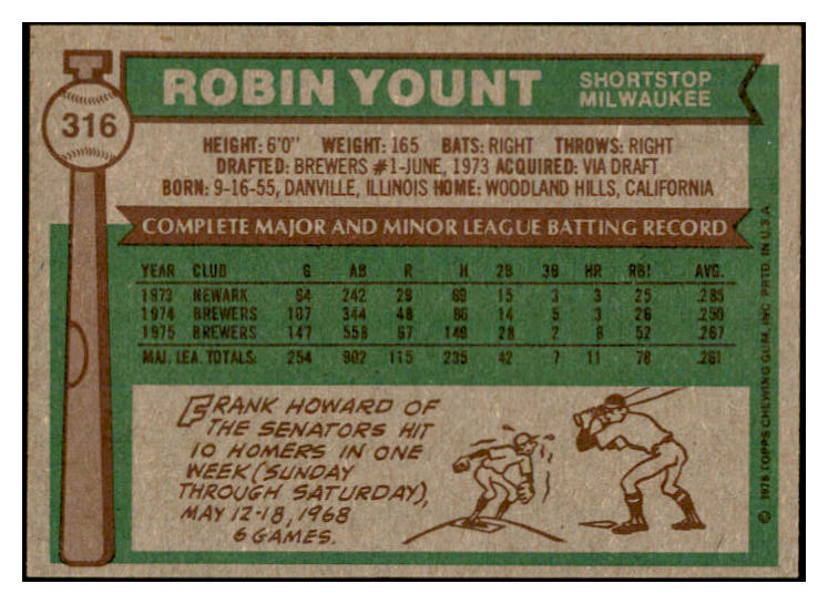 1976 Topps Baseball #316 Robin Yount Brewers EX-MT 532392