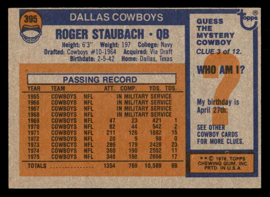 1976 Topps Football #395 Roger Staubach Cowboys EX-MT 547133