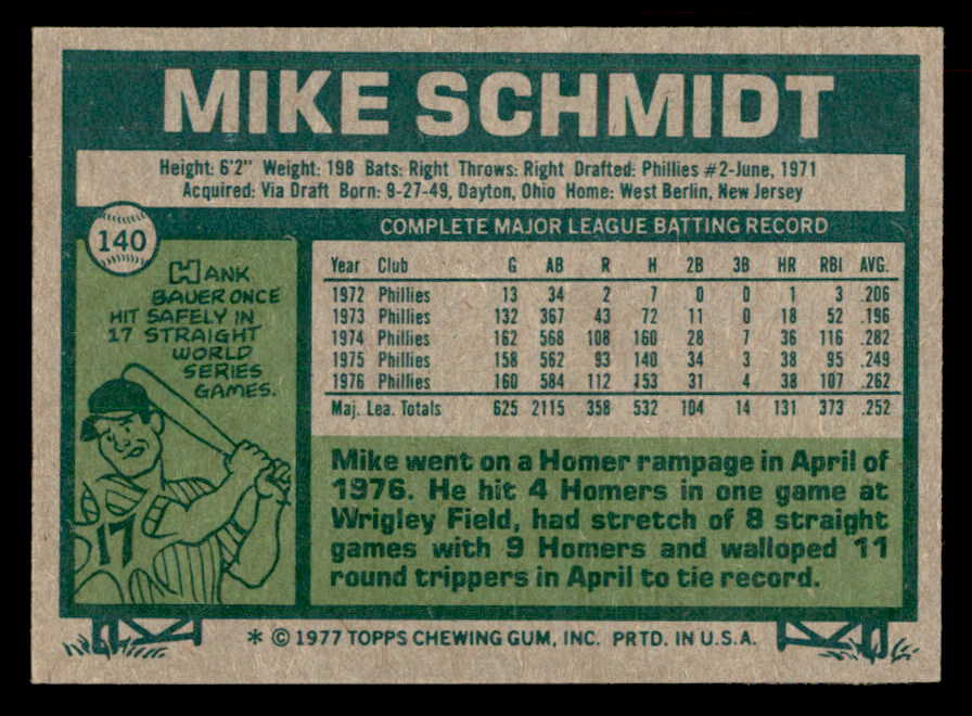 1977 Topps Baseball #140 Mike Schmidt Phillies EX-MT 541602