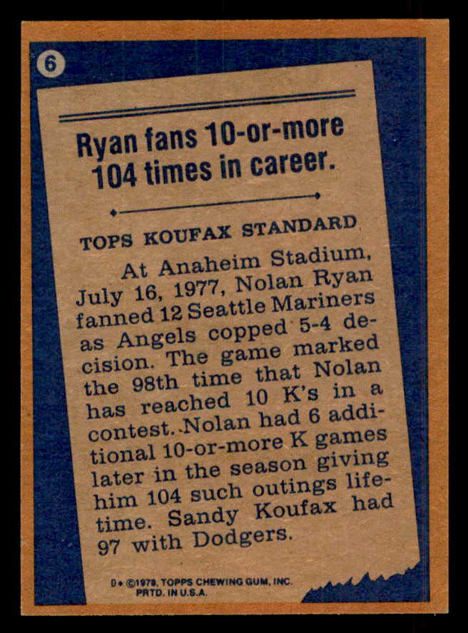 1978 Topps Baseball #006 Nolan Ryan RB Angels NR-MT 541608
