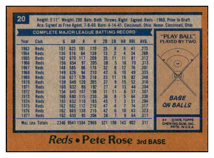 1978 Topps Baseball #020 Pete Rose Reds EX-MT 537733