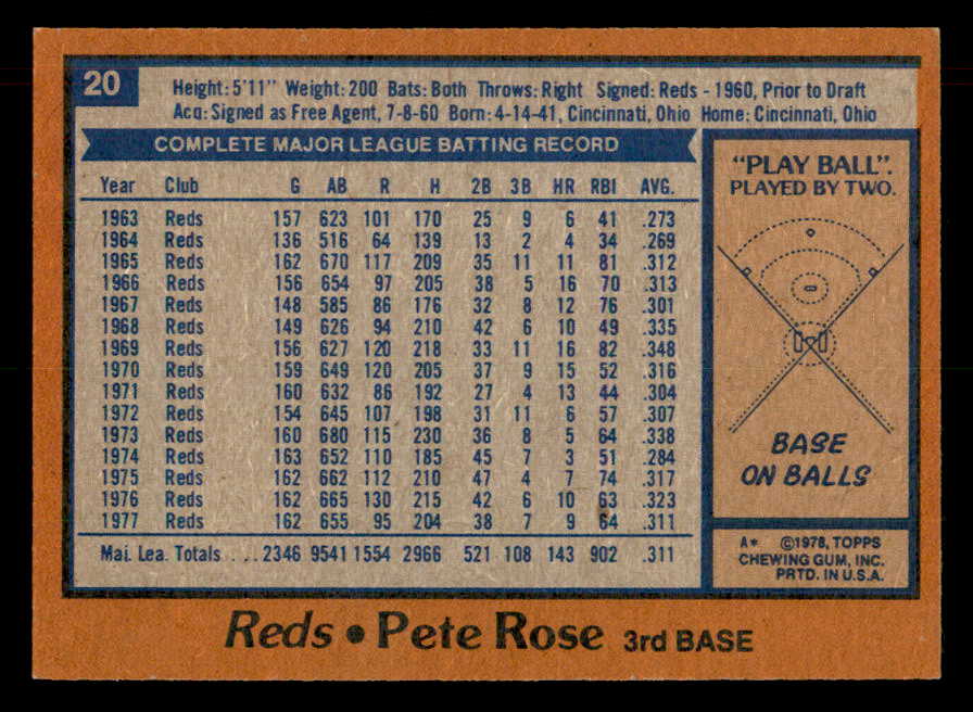 1978 Topps Baseball #020 Pete Rose Reds NR-MT 541612