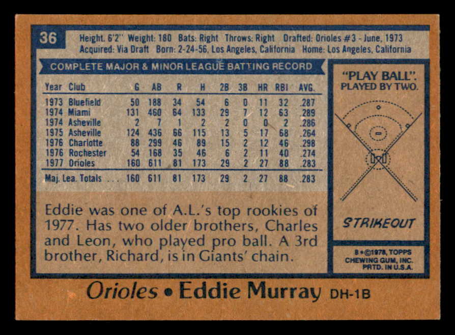 1978 Topps Baseball #036 Eddie Murray Orioles EX+/EX-MT 541716
