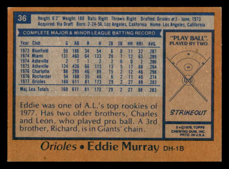 1978 Topps Baseball #036 Eddie Murray Orioles EX+/EX-MT 541717
