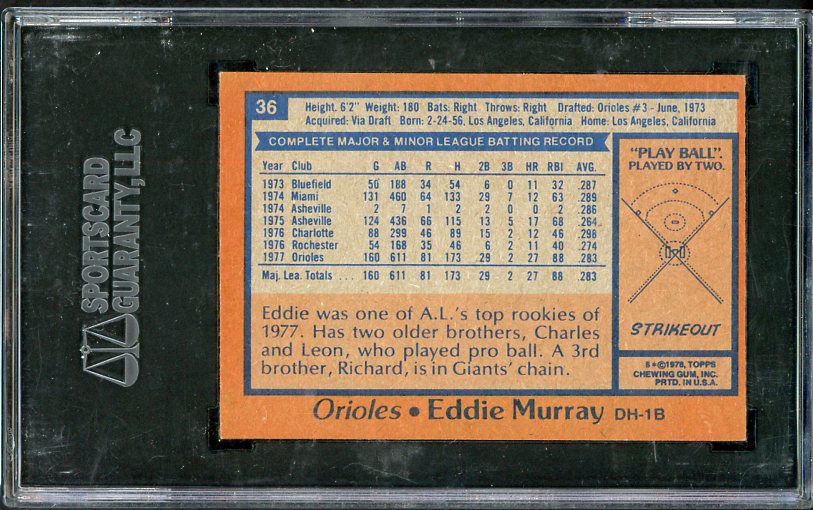 1978 Topps Baseball #036 Eddie Murray Orioles SGC 7.5 NM+ 538433