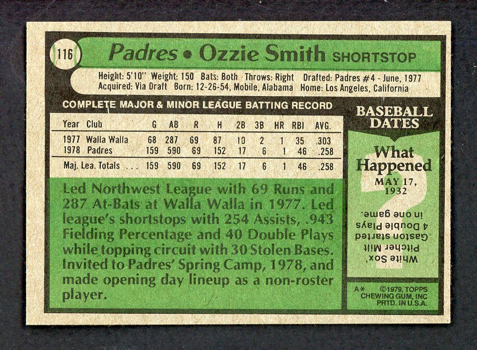 1979 Topps Baseball #116 Ozzie Smith Padres EX-MT 546519