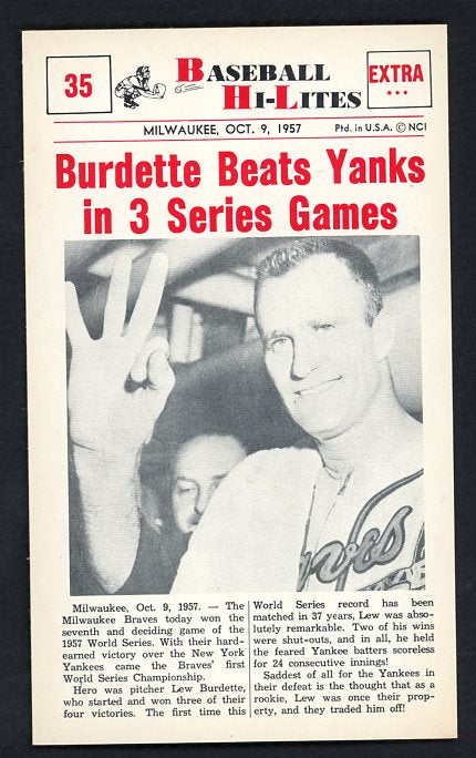 1960 Nu Card Hi Lites #035 Lou Burdette Braves NR-MT 515459