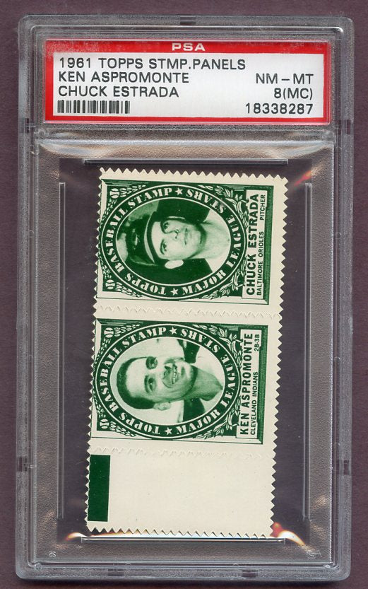 1961 Topps Baseball Stamp Panel Ken Aspromonte Chuck Estrada PSA 8 NM/MT mc