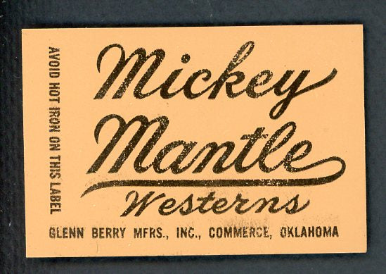 1962 Glenn Berry MFG Mickey Mantle Western Jeans Patch 427334