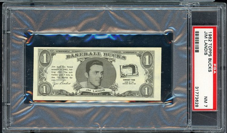 1962 Topps Baseball Bucks Jim Landis White Sox PSA 7 NM