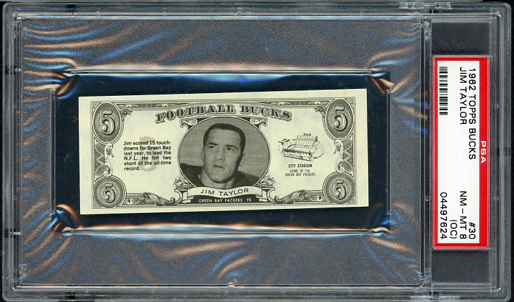1962 Topps Football Bucks #030 Jim Taylor Packers PSA 8 NM/MT oc