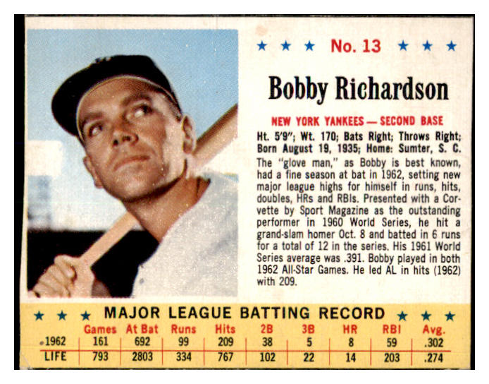 1963 Jello #013 Bobby Richardson Yankees VG 458037