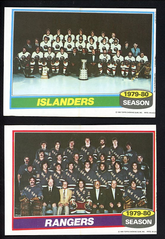 1980-81 Topps Hockey Team Posters complete set of 16 in EX+/EX-MT condition overall. Includes Rangers, Islanders, Bruins, Flyers, etc. Buy with confidence. We are the oldest full-time dealer in America, serving collectors since 1976. ALL CARDS ARE SUBJECT TO YOUR APPROVAL. If you ever receive anything that is unsatisfactory you may return it for replacement or full refund. The card pictured is the actual card you will receive. For orders or assistance, call our Toll Free number 888-548-9686 weekdays 8-6 Pacific.