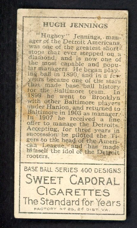 1911 T205 T 205 Hugh Jennings Tigers GD-VG 548403