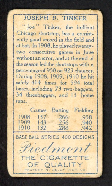 1911 T205 T 205 Joe Tinker Cubs GD-VG 548431