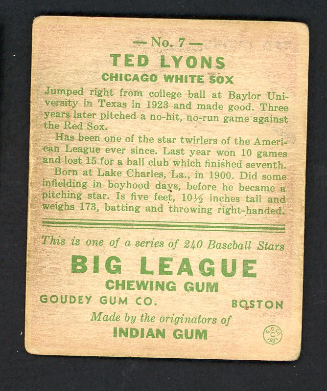 1933 Goudey #007 Ted Lyons White Sox VG 547285