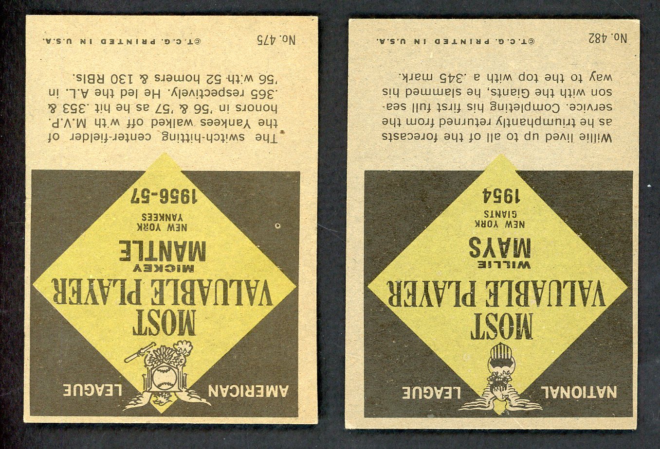 1961 Topps Lot #475 Mickey Mantle MVP #482 Willie Mays MVP Sharp 543312