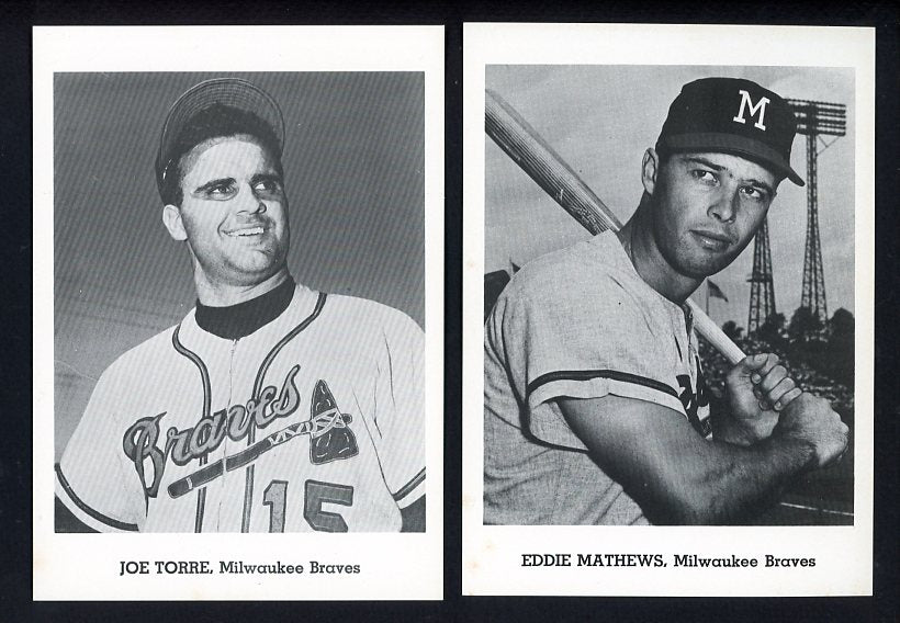 1962 Jay Publishing Milwaukee Braves complete set of 12. Buy with confidence. We are the oldest full-time dealer in America, serving collectors since 1976. ALL CARDS ARE SUBJECT TO YOUR APPROVAL. If you ever receive anything that is unsatisfactory you may return it for replacement or full refund. The card pictured is the actual card you will receive. For orders or assistance, call our Toll Free number 888-548-9686 weekdays 8-6 Pacific.