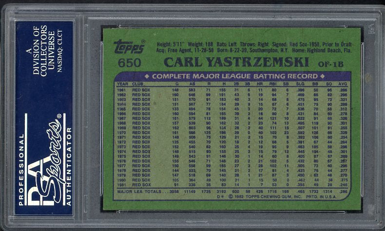 1982 Topps #650 Carl Yastrzemski Red Sox PSA 9 MINT 538253