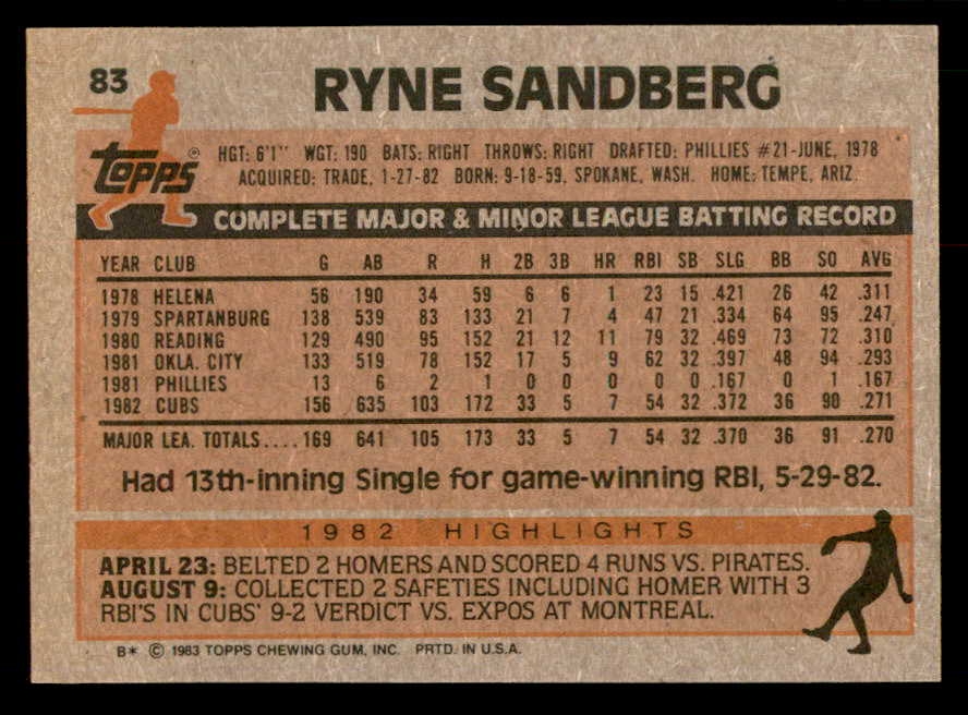 1983 Topps #083 Ryne Sandberg Cubs NR-MT 543243