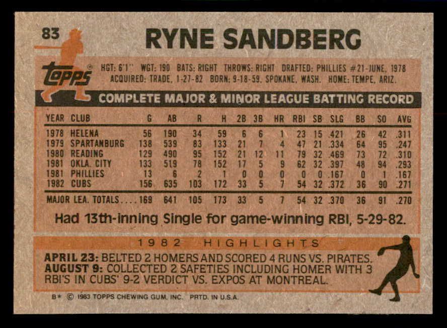 1983 Topps #083 Ryne Sandberg Cubs VG-EX 543241
