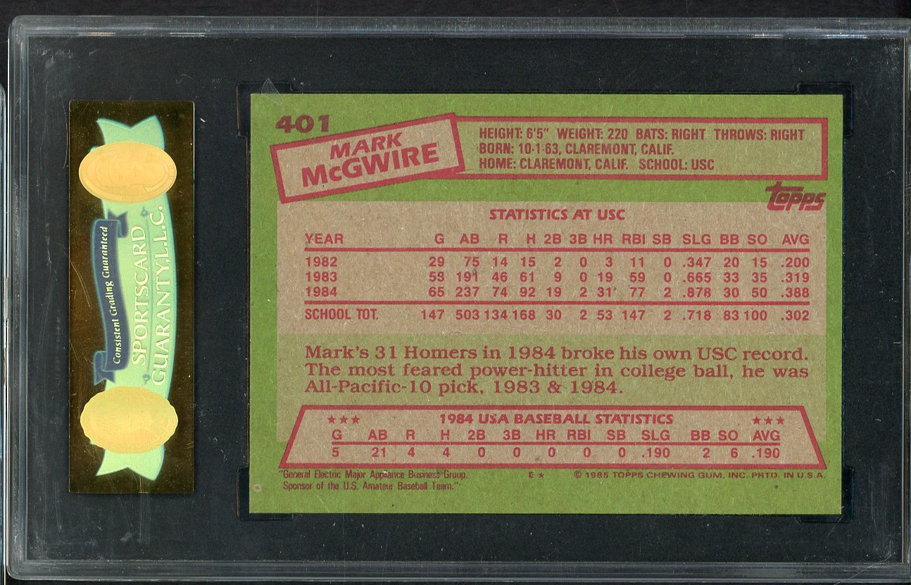 1985 Topps #401 Mark McGwire A's SGC 8 NM/MT 544785