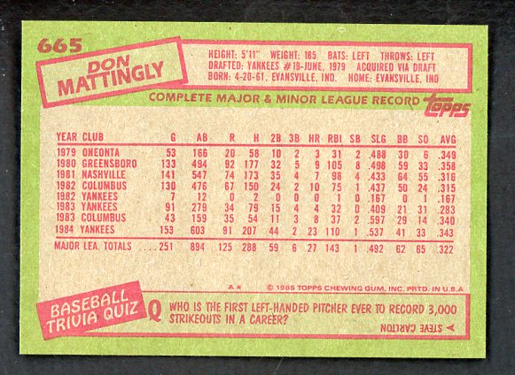 1985 Topps #665 Don Mattingly Yankees NR-MT 537740