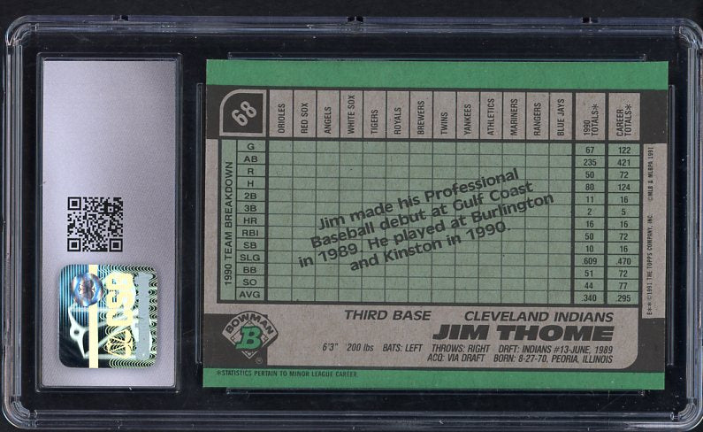 1991 Bowman #068 Jim Thome Indians CSG 9 MINT 534055
