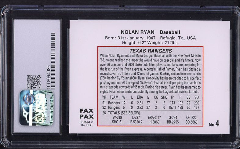 1993 Fax Pax #004 Nolan Ryan Rangers CSG 9 MINT 534037