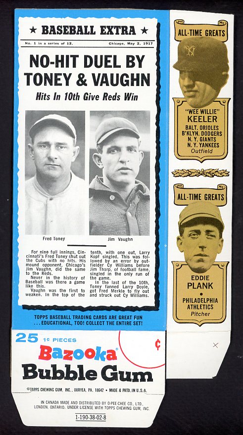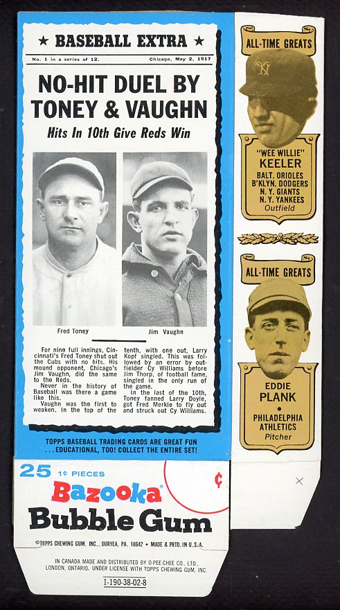 1969 Bazooka #001 Fred Toney Jim Vaughn Box No Top Flap EX-MT/NR-MT 536906